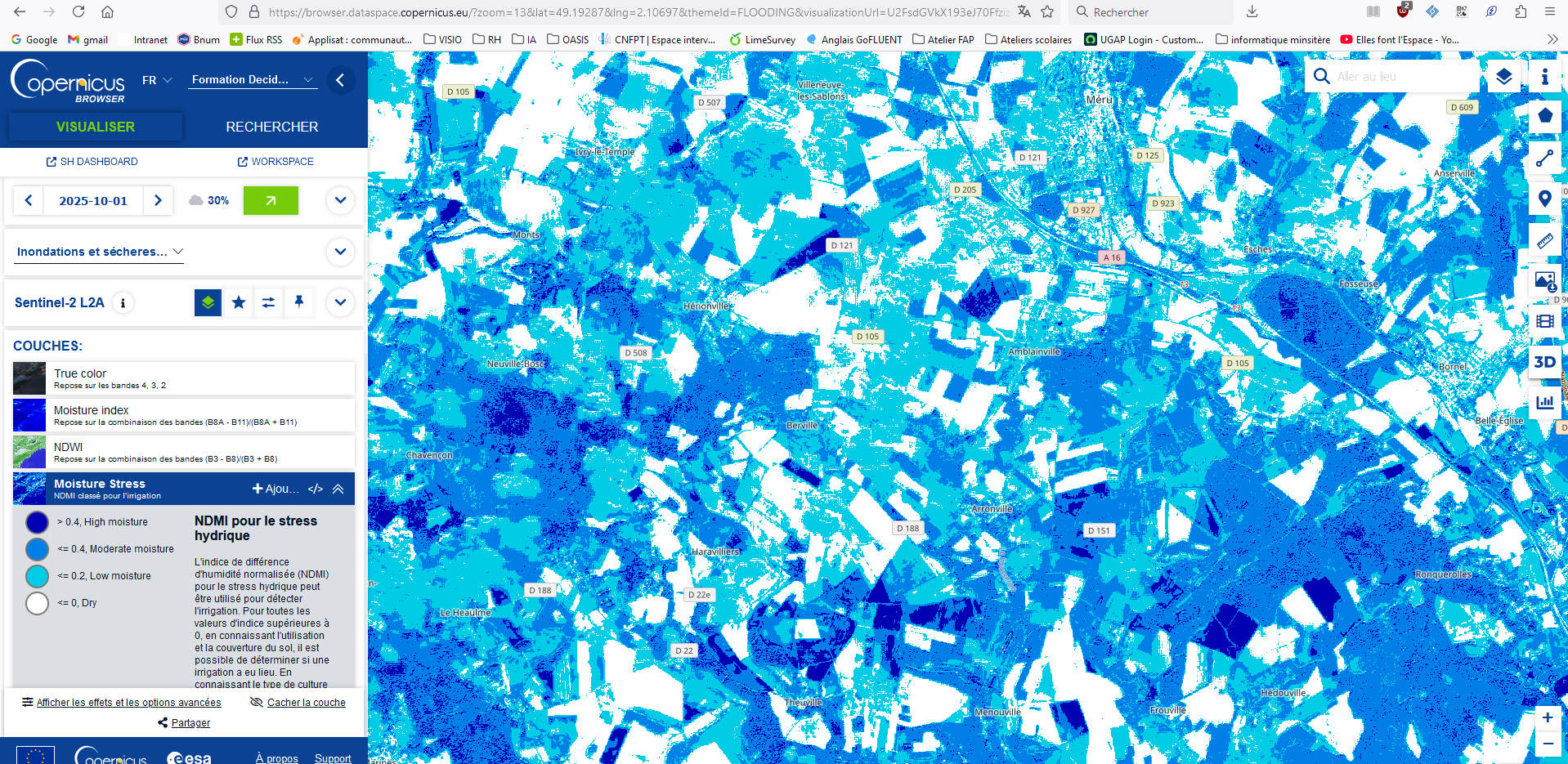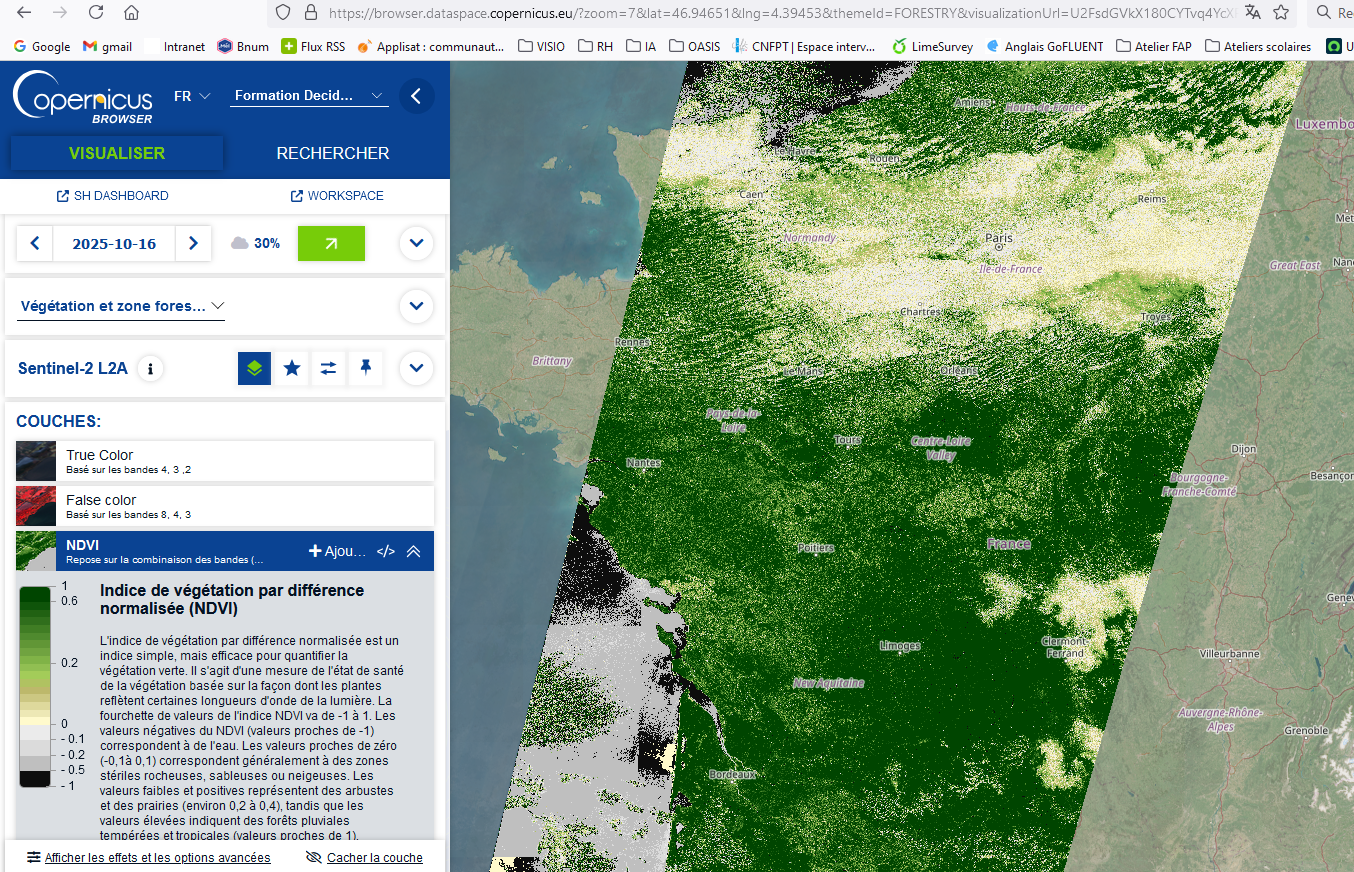 Les indices sont visualisables à la volée sur la plateforme Copernicus Browser -> https://browser.dataspace.copernicus.eu