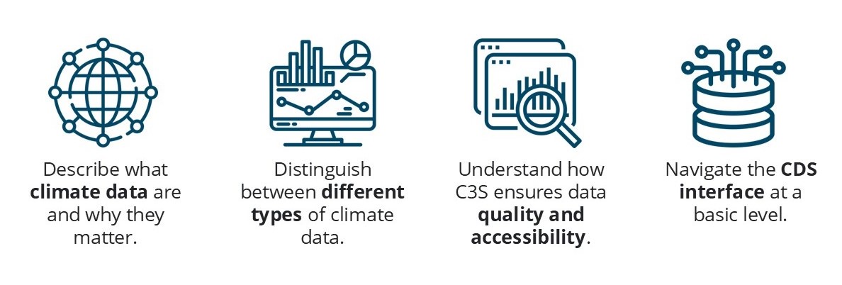 - Il vous permet de comprendre les types de données climatiques fournis par le C3S, leur champ d'application et leurs limites.